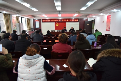 1月22日,区农业局召开全体党员干部会议,学习贯彻区人大、政协九届二次会议精神。 局党组成员、党支部书记张裕涛传达王庆丰区长在区人大会议上所作的《政府工作报告》。一年来,在区委、区政府的正确领导下,全区上下牢固树立“四个意识”,开拓创新,团结奋进,全区各项事业取得长足发展和全面进步,人民生活水平得到明显改善。